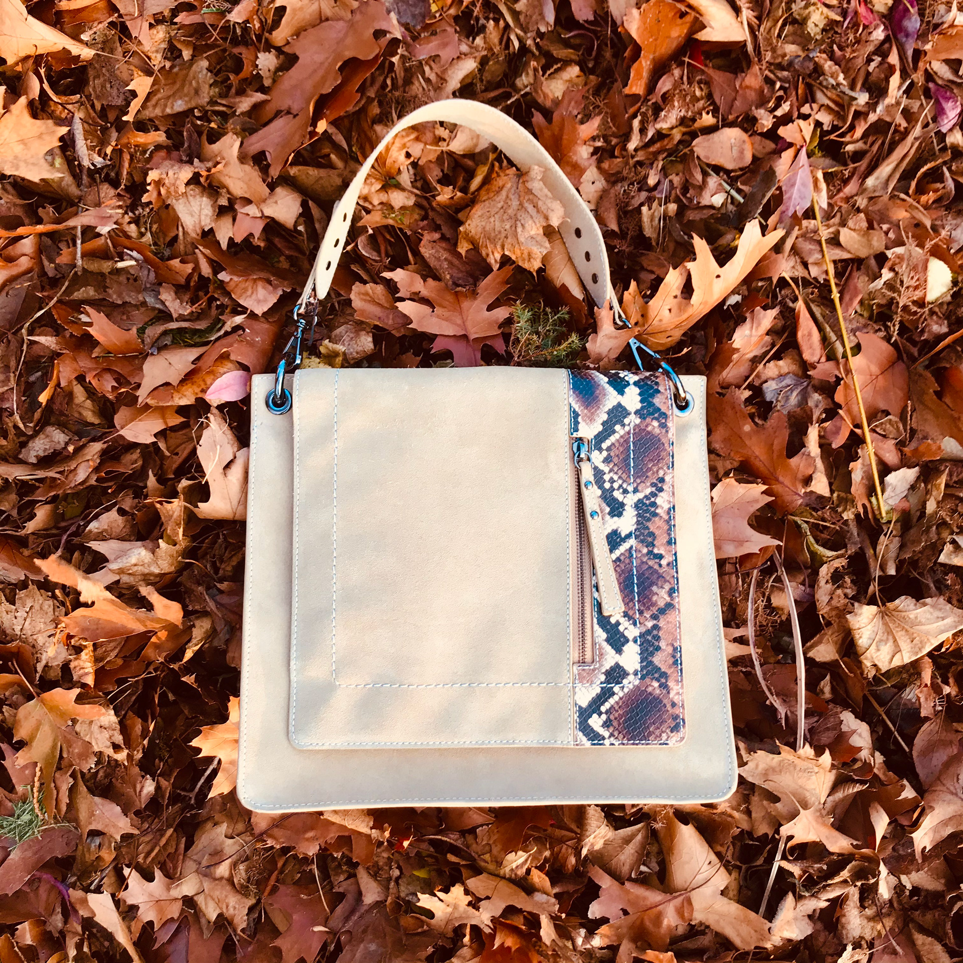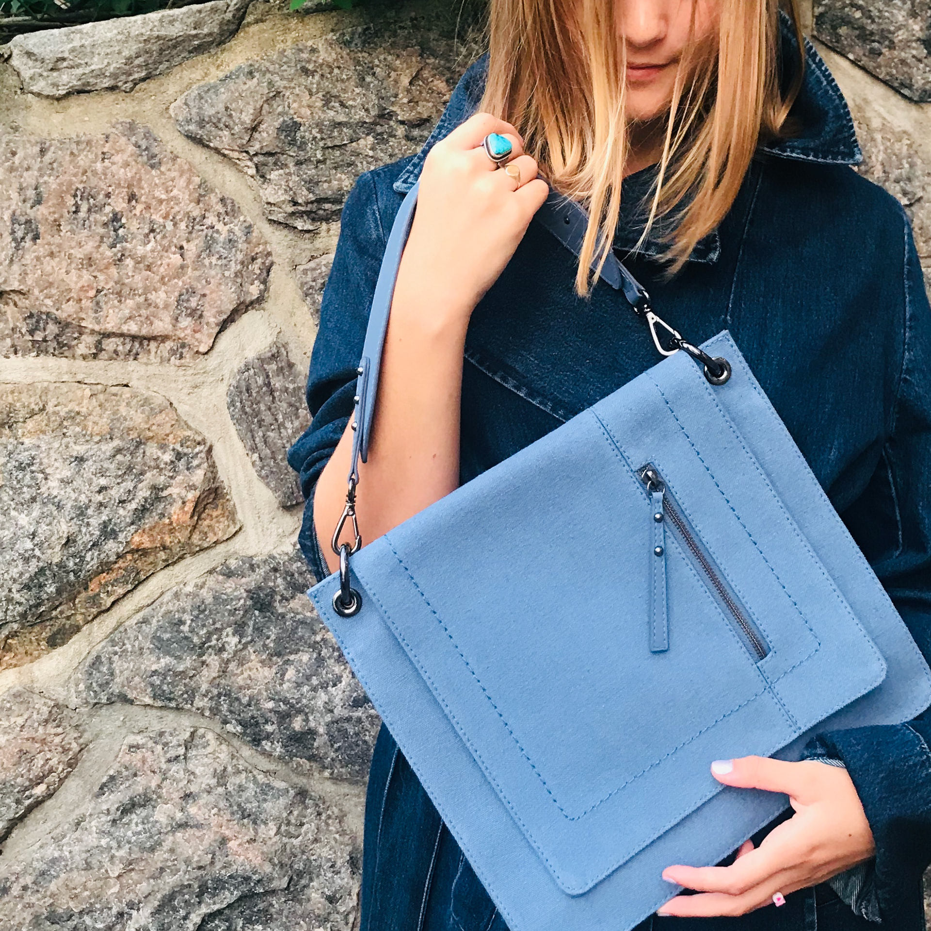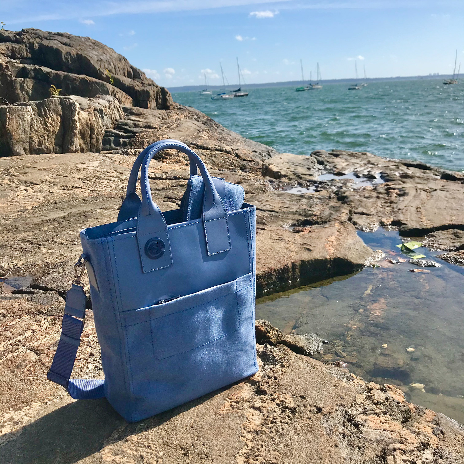 In a world where more is more we want you to think differently. The silhouettes are versatile and can be styled in multiple ways. They all have an easy, casual New York vibe. Each style has been carefully crafted and constructed to perfection. The materials have been thoughtfully selected to create the least harm to the planet as possible. The carbon footprint in the manufacturing process is kept to a minimum. All of the leathers used are chrome free and are perfected by hand finishes and considered design details. All textiles are made from recycled fibers. Elliara has partnered with Eco-Simple to create the chambray blue textile linings which are made from recycled plastic bottles.